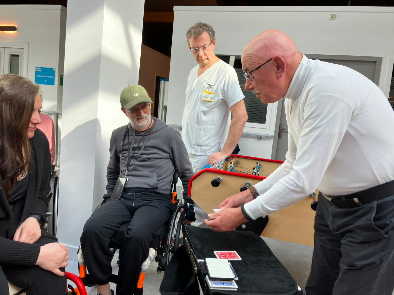 Véronique, Bernard, Bern'Art et Pascal ont passé un grand moment avec Gaëtane, puis ont assuré une animation de presque 2h00 pour une trentaine de patients. Après de nombreux numéros de magie très visuels, nous avons finalisé notre animation par du close-up.