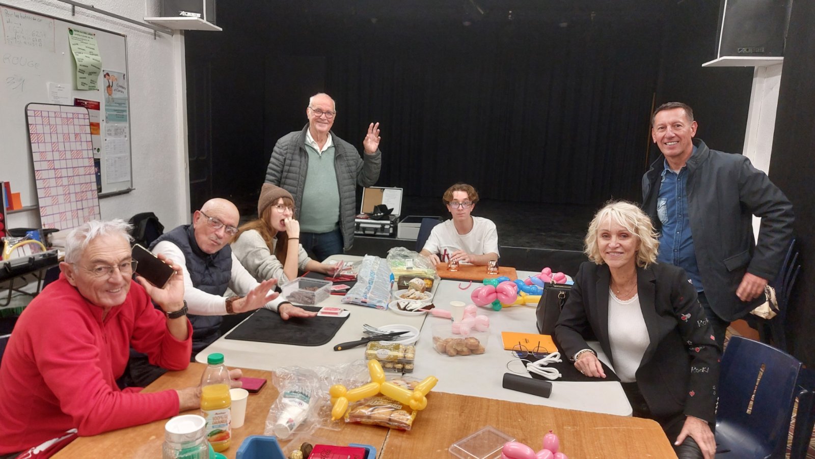 Véronique, nous a présenté la routine de corde et anneau qu'elle prépare pour son spectacle de Cabaret, Nino, a présenté sa routine de Chop Cup, qu'il améliore à chaque fois, nous avons travaillé la sculpture de ballon, etc... et nous avons aussi dégusté les gateaux présents sur la table....