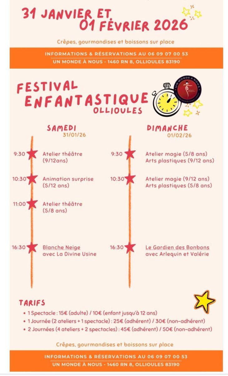 Samedi 31 janvier et Dimanche 1er février, Claude Arlequin et son équipe anime le Festival ENFANTASTIQUE d'OLLIOULES (Var)